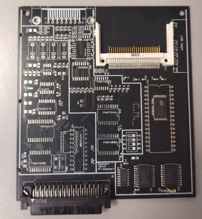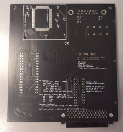 For some reason, the XT-IDE BIOS on this device is sometimes unstable. I put the XT-IDE on a ROM on the 3Com Etherlink III (using address D000 instead of C800), this seems to be a lot more stable. Then I finally disabled the XT-IDE on the CF reader, by soldering a jumper place (but leaving it unpopulated) in place of the long soldered bridge closest to text C.M._.