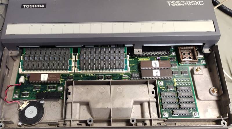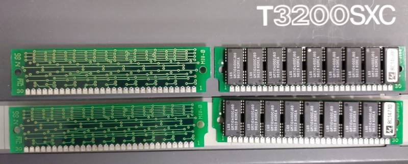 The T3200SXC has 1 MB internal RAM. Maximum that can be added is 3x2x2MB = 12MB so it will have a maximum of 13 MB. *UPDATE* Maximum is actually 16MB, because 4 MB modules can be used, but 386SX cannot address more than 16 MB.