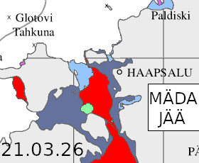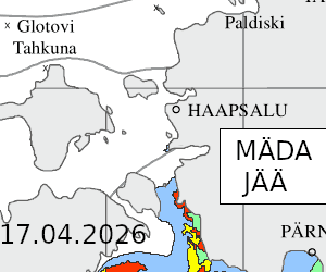 ÜLEVAADE OLUKORRAST Jäätalv 2025/26 Väinamerel Väinamere jää sulab kiiresti! Hiiumaa-Saaremaa jäätee oli vahelduvalt avatud 08.02 kuni 26.02. Vormsi jäätee avati hiljem ja taasavati veel üsna soojal ajal, liiklus käis juba üsna veebruari alguses. 27.02 sõitis laev Tõll Tallinna poolt läbi Muhu väina Virtsu. Hetke ilmaolusid Heltermaal, Virtsus ja Rohukülas on võimalik vaadata Ilmateenistuse koduleheküljelt (Meri). Kaardid: 28.11 | 30.11 | 10.12 | 04.01 | 10.01 | 21.01 | 26.01 | 01.02 | 06.02 | 08.02 | 14.02 | 20.02 | 26.02 | 08.03 | 15.03 | 21.03 | 27.03 | 10.04 | 17.04 | 18.04 Jäätalv 2025/26 Läänemerel Kaardid: 17.11 | 24.11 | 01.12 | 08.12 | 15.12 | 22.12 | 29.12 | 05.01 | 12.01 | 19.01 | 26.01 | 02.02 | 09.02 | 15.02 | 23.02 | 02.03 | 09.03 | 15.03 | 23.03 | 31.03 | 06.04 | 13.04 Kaartide allikad: - https://www.smhi.se/oceanografi/istjanst/produkter/sstcolor.pdf - http://en.ilmatieteenlaitos.fi/ice-conditions |